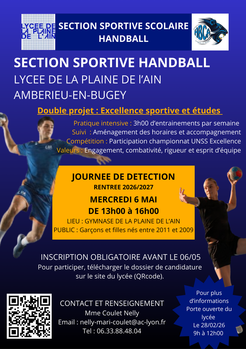 Nous avons le plaisir de t'annoncer que les inscriptions pour la Section Sportive Scolaire Handball d’Ambérieu-en-Bugey sont officiellement ouvertes pour la rentrée prochaine.